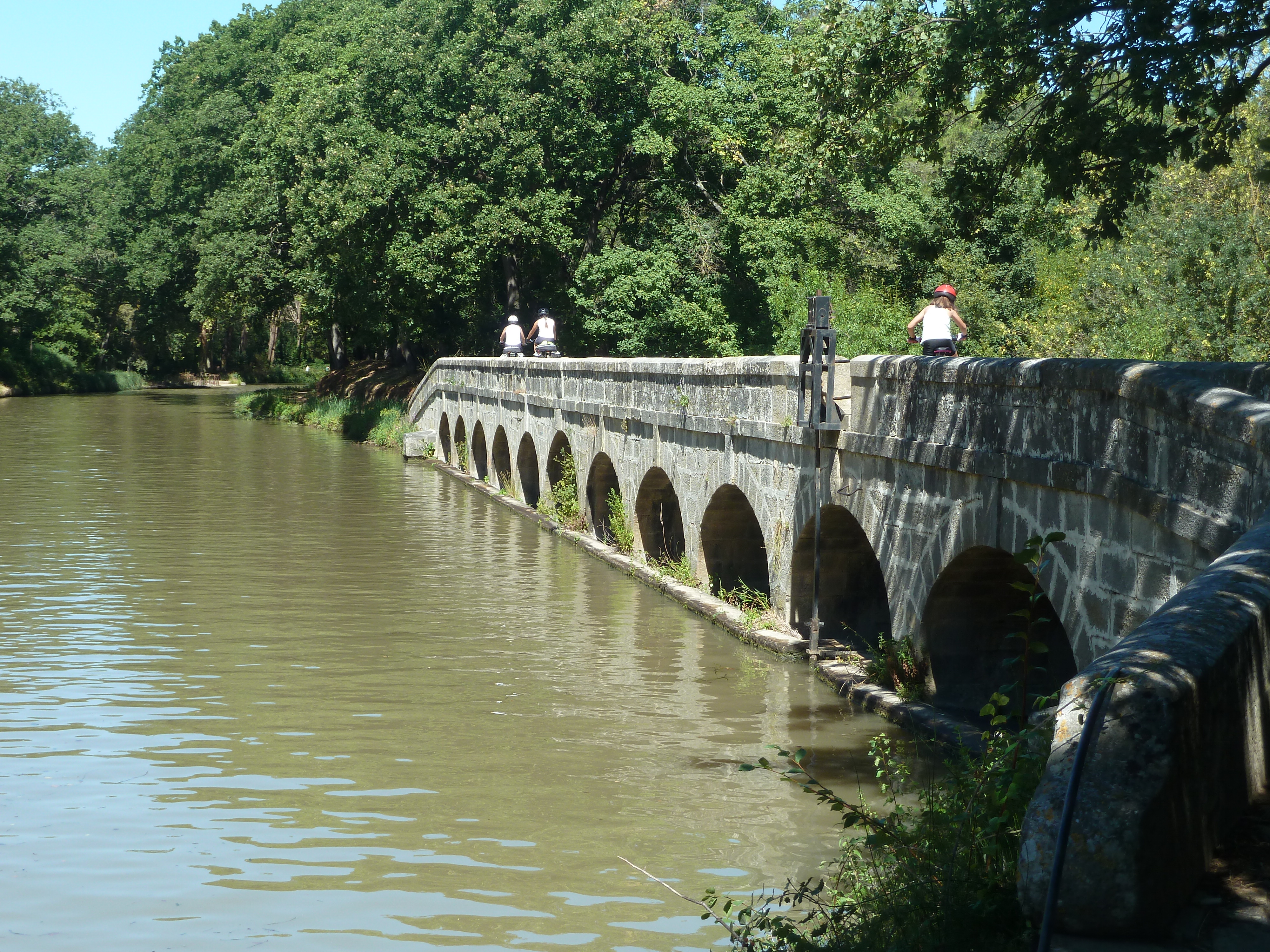 Ce quatrième jour s’est avéré être un peu plus dur pour nous. En effet, la piste se rétrécit et de nombreuses racines et cailloux sont en travers du chemin. De plus de nombreux passages n’ont plus autant d’arbres. Nous sommes obligés de quitter le sentier entre Paranza et Ventenac-en-minervois. Arrivés dans le joli village du Somail, visite de la librairie (plus de 50000 ouvrages de tout temps) et apéritif en compagnie de de la famille Badoc-balboa qui nous ont fait la surprise de passer.